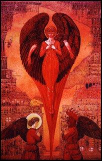 7 Цветовой символизм в Традиции является крайне сложным и варьируется не только в зависимости от той или иной инициатической школы, но и в рамках одной и той же эзотерической организации в зависимости от конкретных символических соответствий. Красный цвет Ангела в данном контексте указывает на его принадлежность промежуточной сфере духовной реальности, на что он сам недвусмысленно указывает в дальнейшем диалоге, объясняя происхождение красного цвета как смешение белого и черного, светлого и мрачного. Красный Ангел здесь - Ангел Границы, Ангел, чья сфера помещается м е ж д у Небом и Землей, между людьми и небесными сущностями. Он Ангел-Посвятитель, по выражению Корбена, "Ange-Initiateur". Корбен считает, что речь идет, как и в других трактатах Сохраварди, связанных с ангелологией и инициацией, об Архангеле Гаврииле, который в исламской эзотеризме отождествляется с Ангелом - Святым Духом или с "действенным Интеллектом", Inteligentia agente, десятым и последним по счету в цепи божественных эманаций Принципа. В другом месте Сохраварди описывает его как "герменевта высших миров", "переводчика" и посланца высших херувимских Интеллектов, которые не входят непосредственно в контакт с людьми. Функции такого Ангела-Посвятителя близки функциям Святого Духа-Параклета в христианской традиции, где он, в отличии от Единого Христа, Одного для всех, открывается каждому существу в особой форме, ритуально воспроизводящей "индивидуализированность" самой человеческой души.